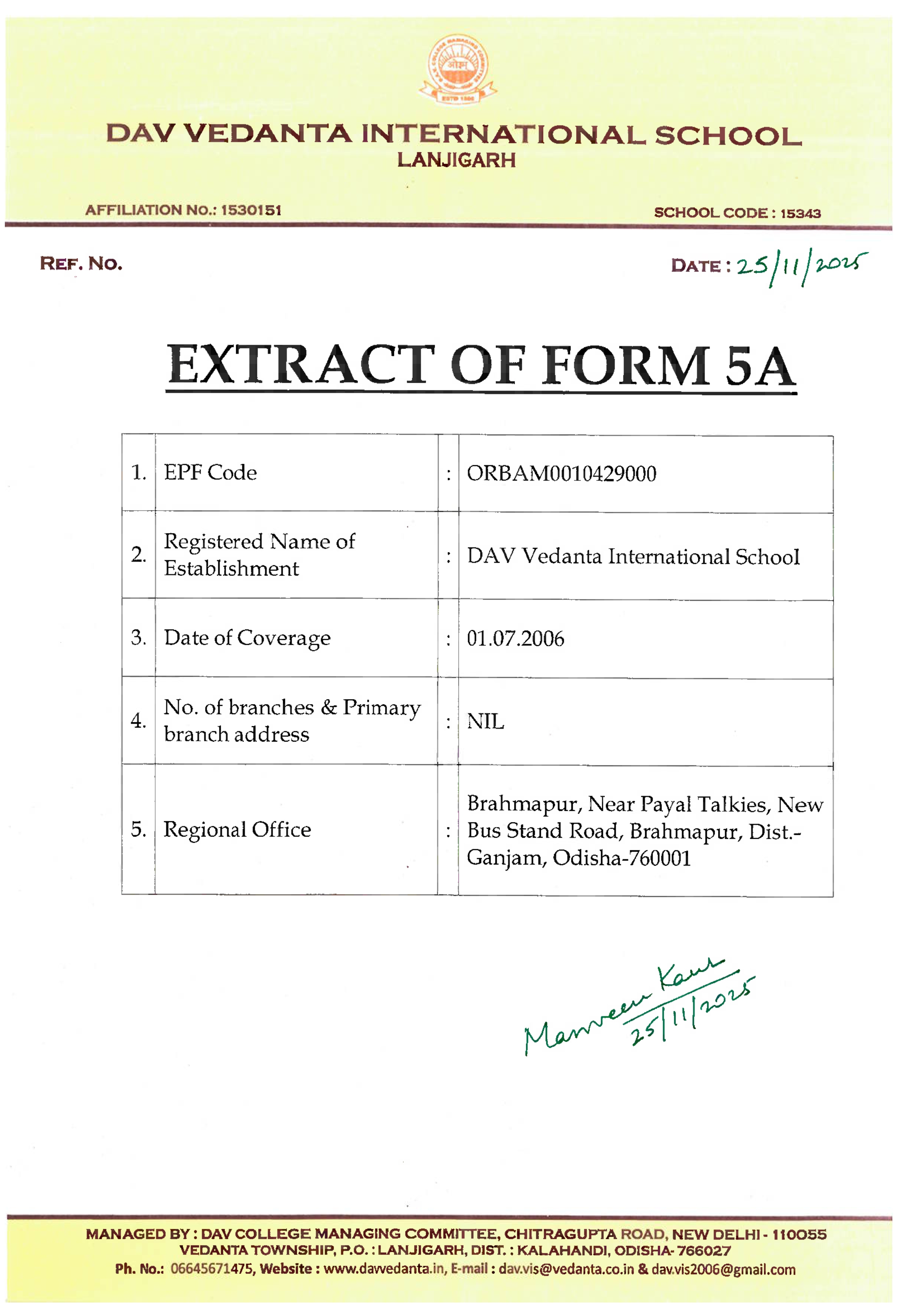 EXTRACT OF FORM 5A